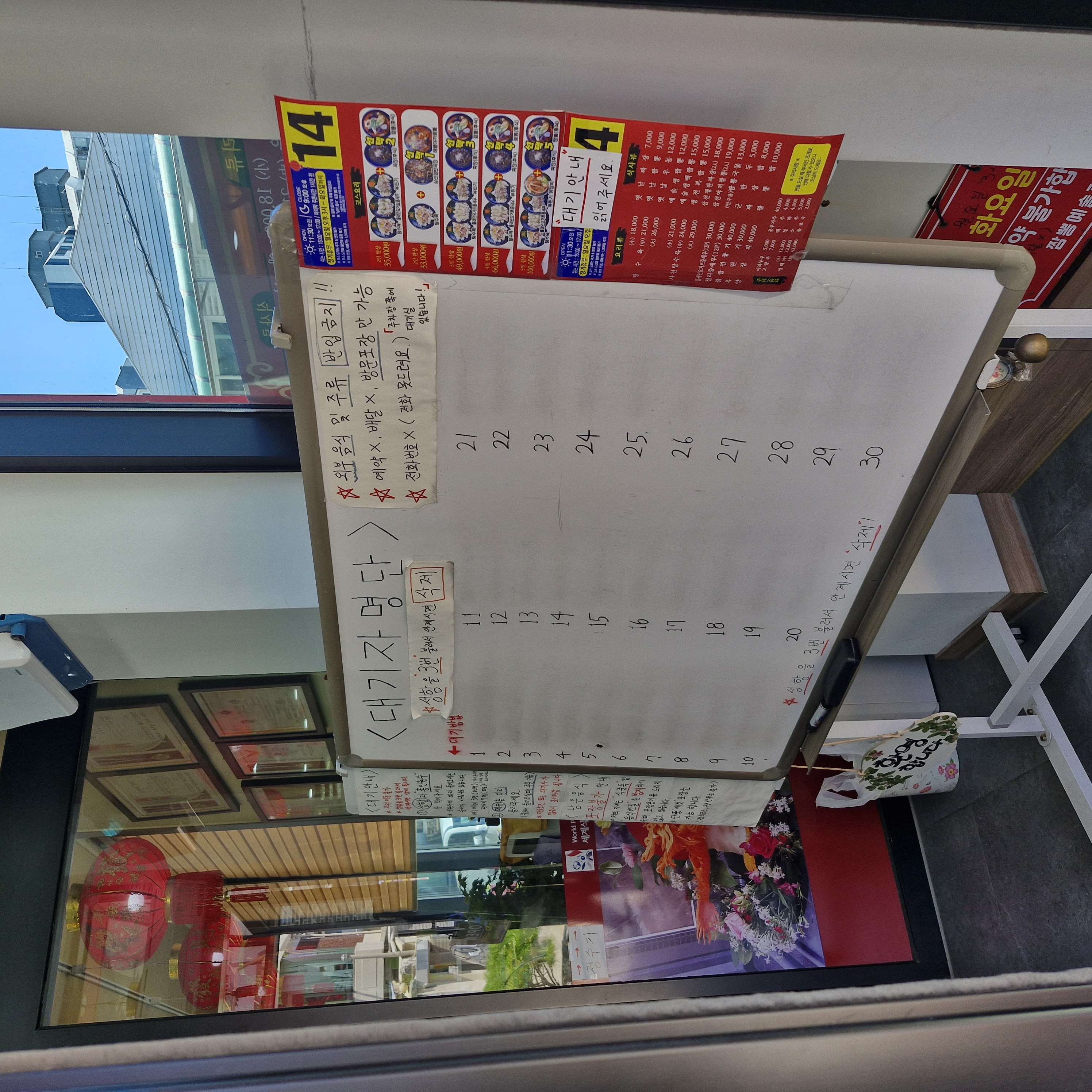 웨이팅이 필요할 땐 대기자 명단을 쓰고 밖에서 기다려야 합니다