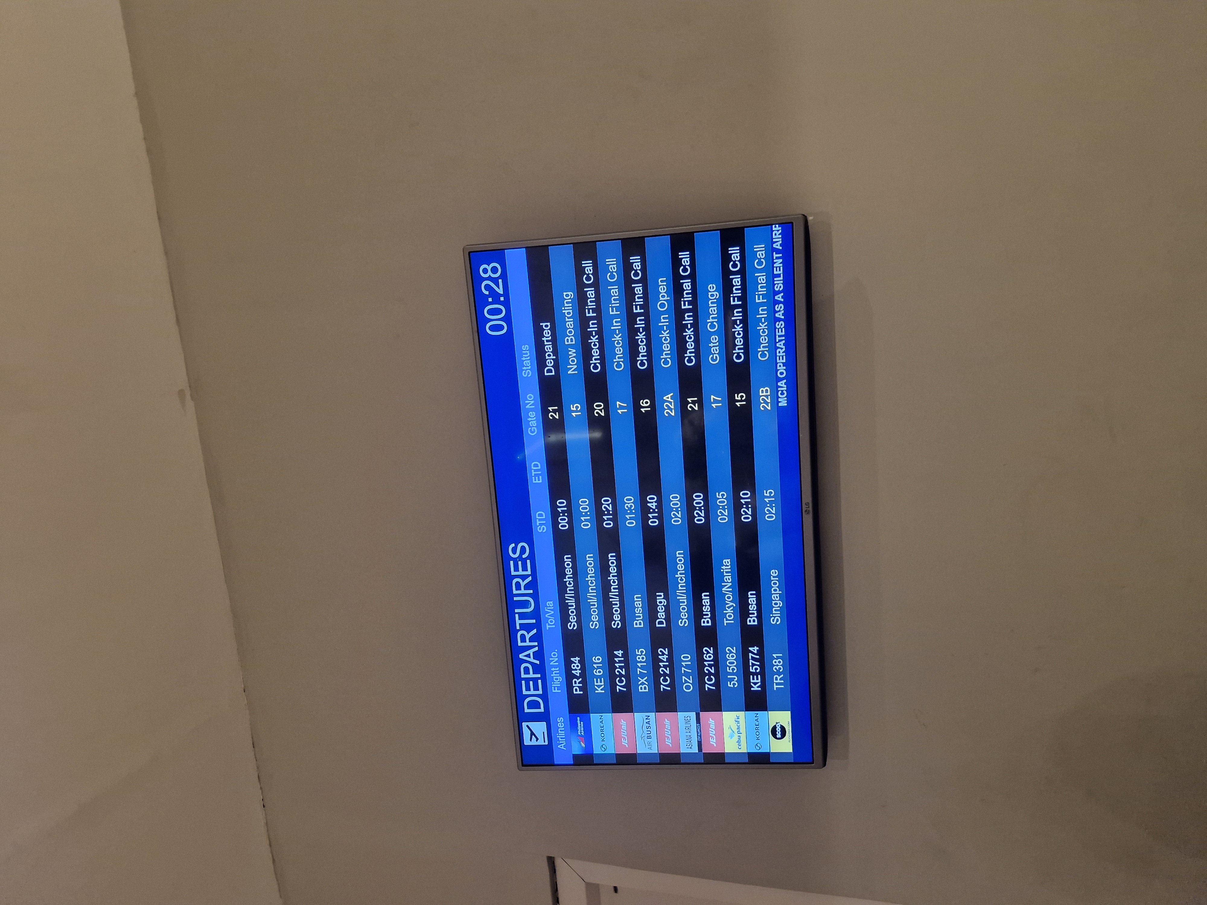 라운지 안에서도 출국 시간과 게이트를 확인 할 수 있는 모니터가 있어요