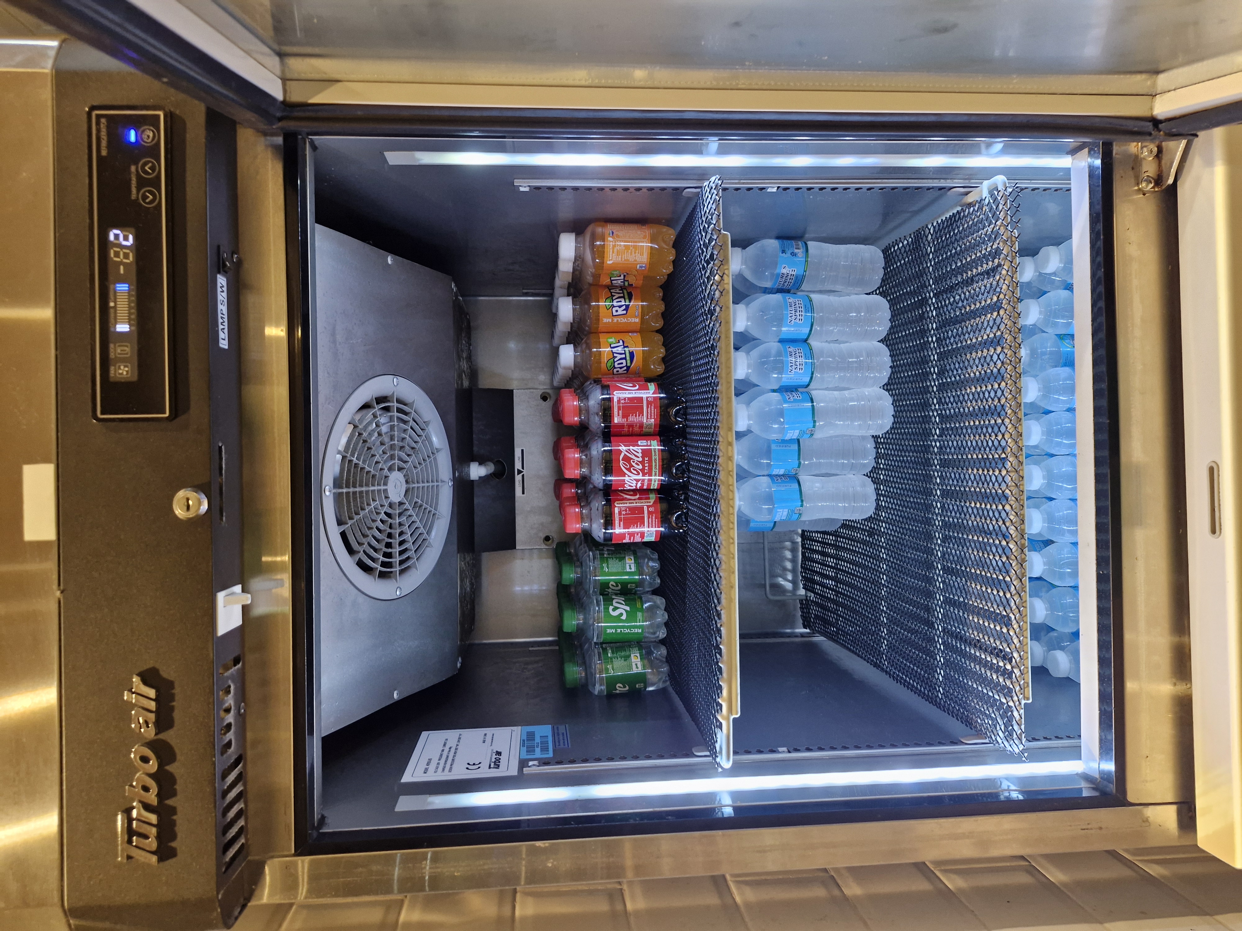 한 쪽 냉장고에는 물과 음료가 들어있어서 마음껏 꺼내 마실 수 있습니다.