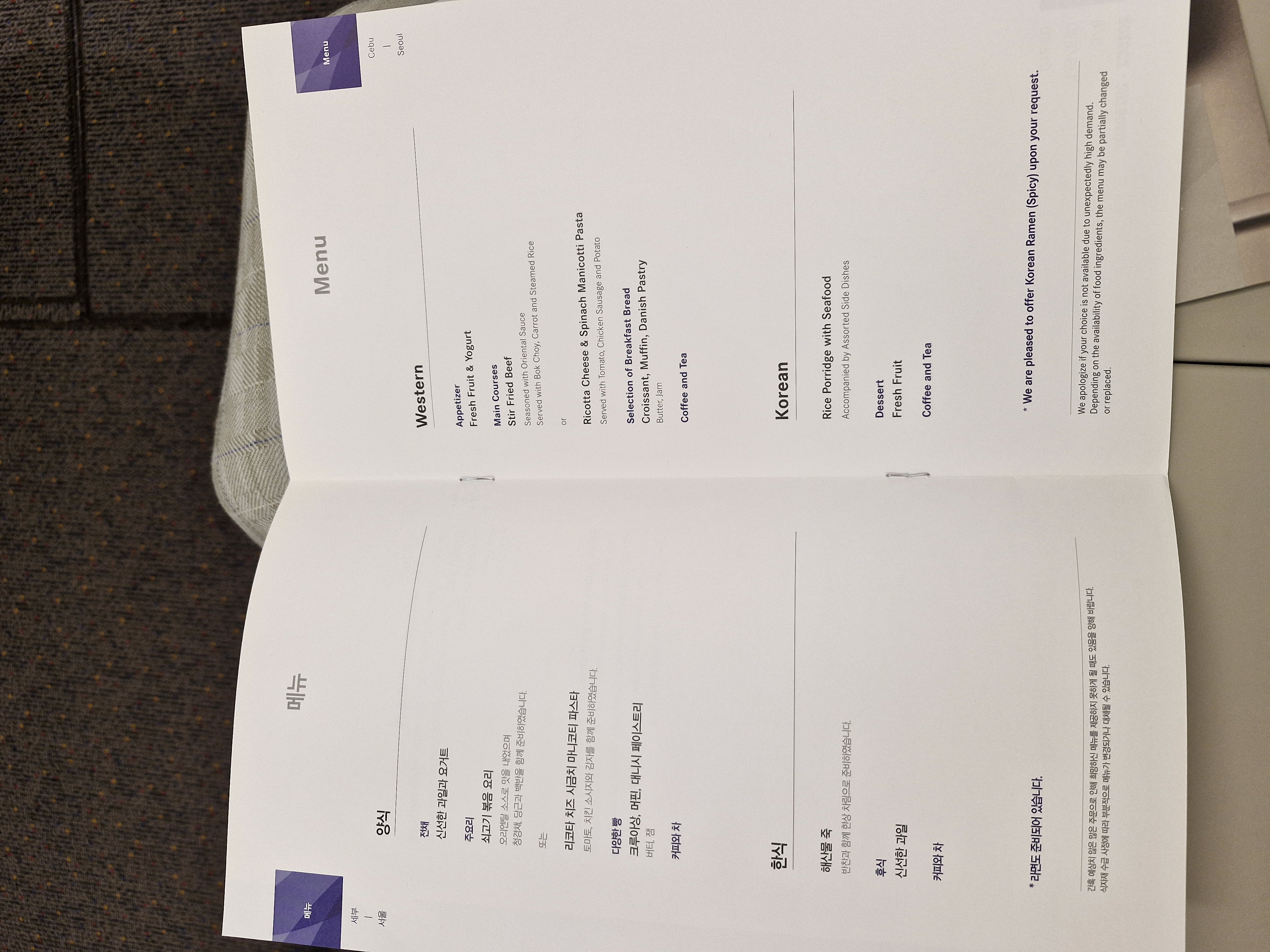 비행기가 이륙하기도 전에 식사 메뉴 주문을 받으시더라구요
