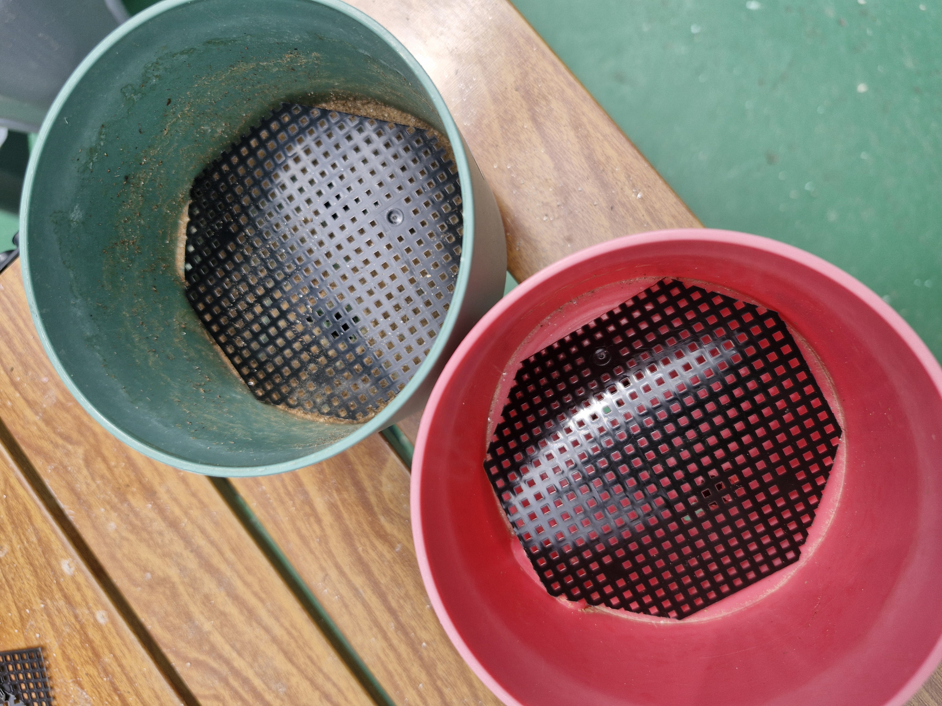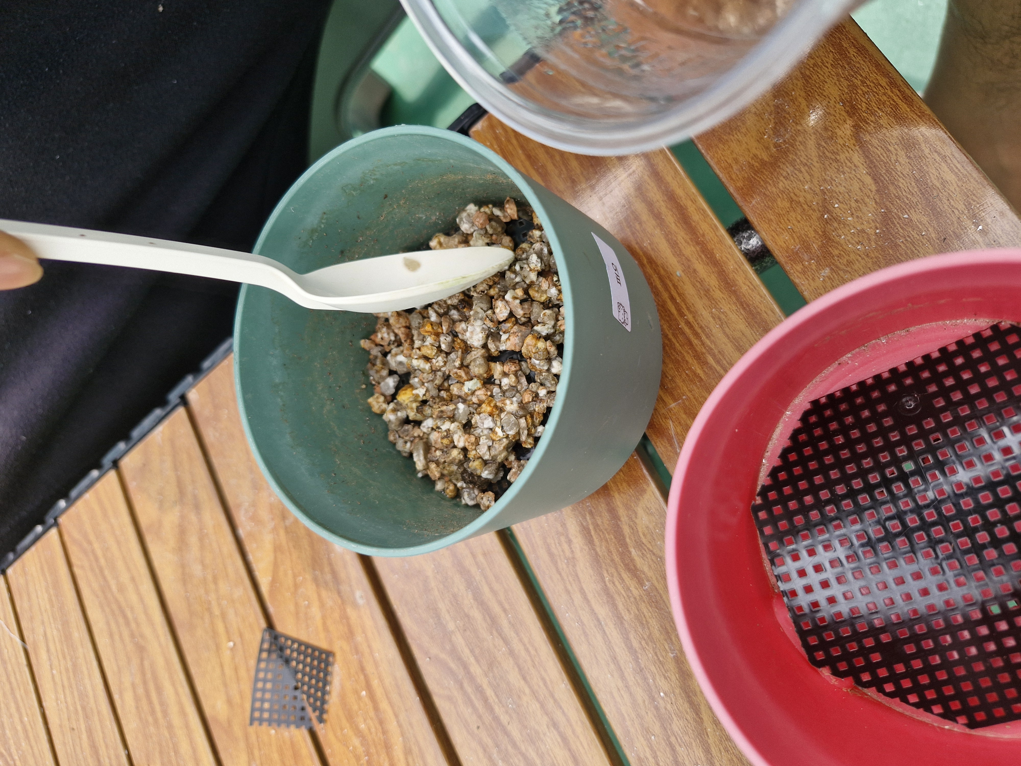 깔망 위에 배수를 도와주는 마사토를 1cm정도 깔아주었습니다.