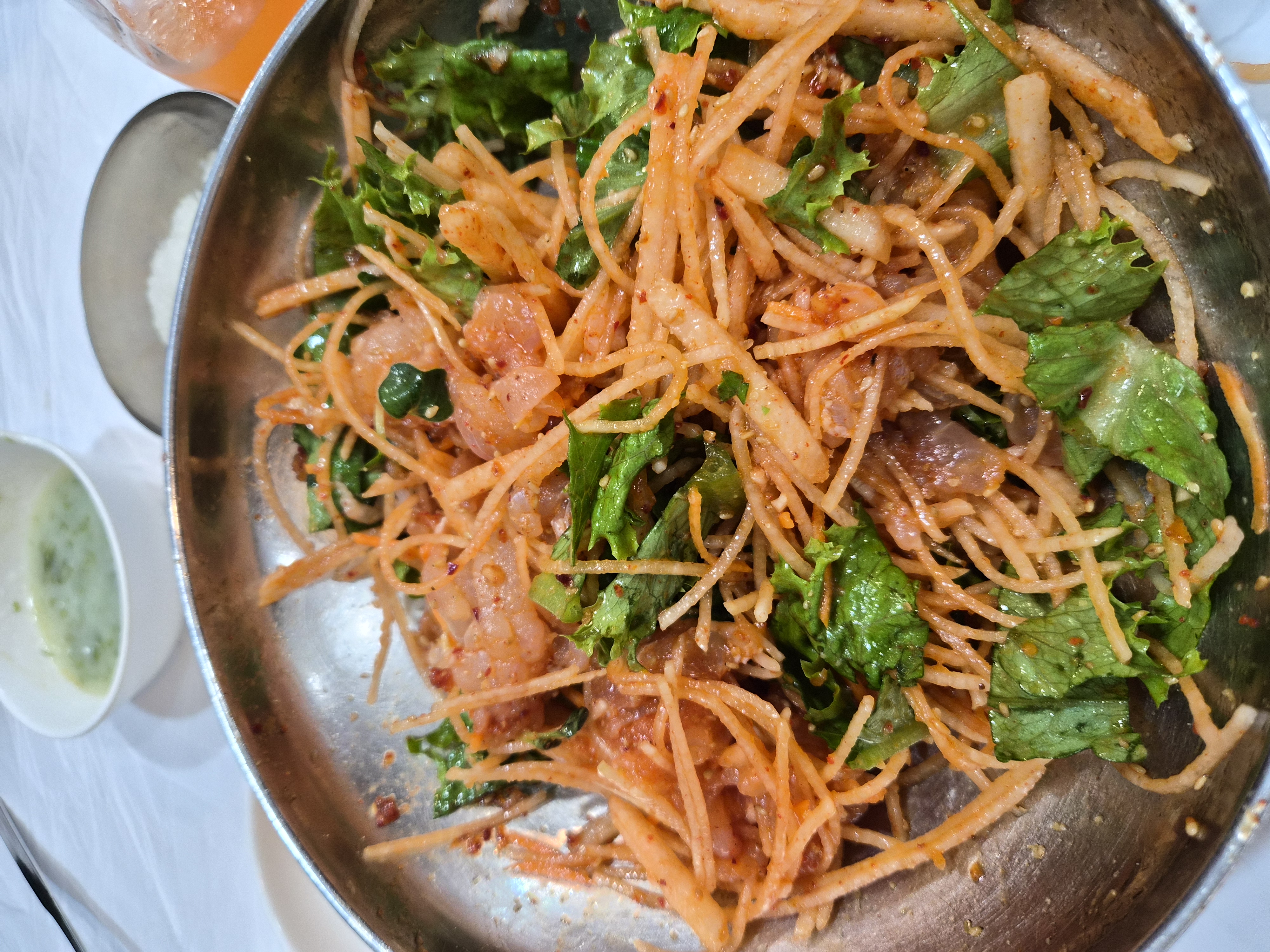 탱글탱글한 활어회와 아삭아삭한 무와 배의 조합이 정말 좋았다.