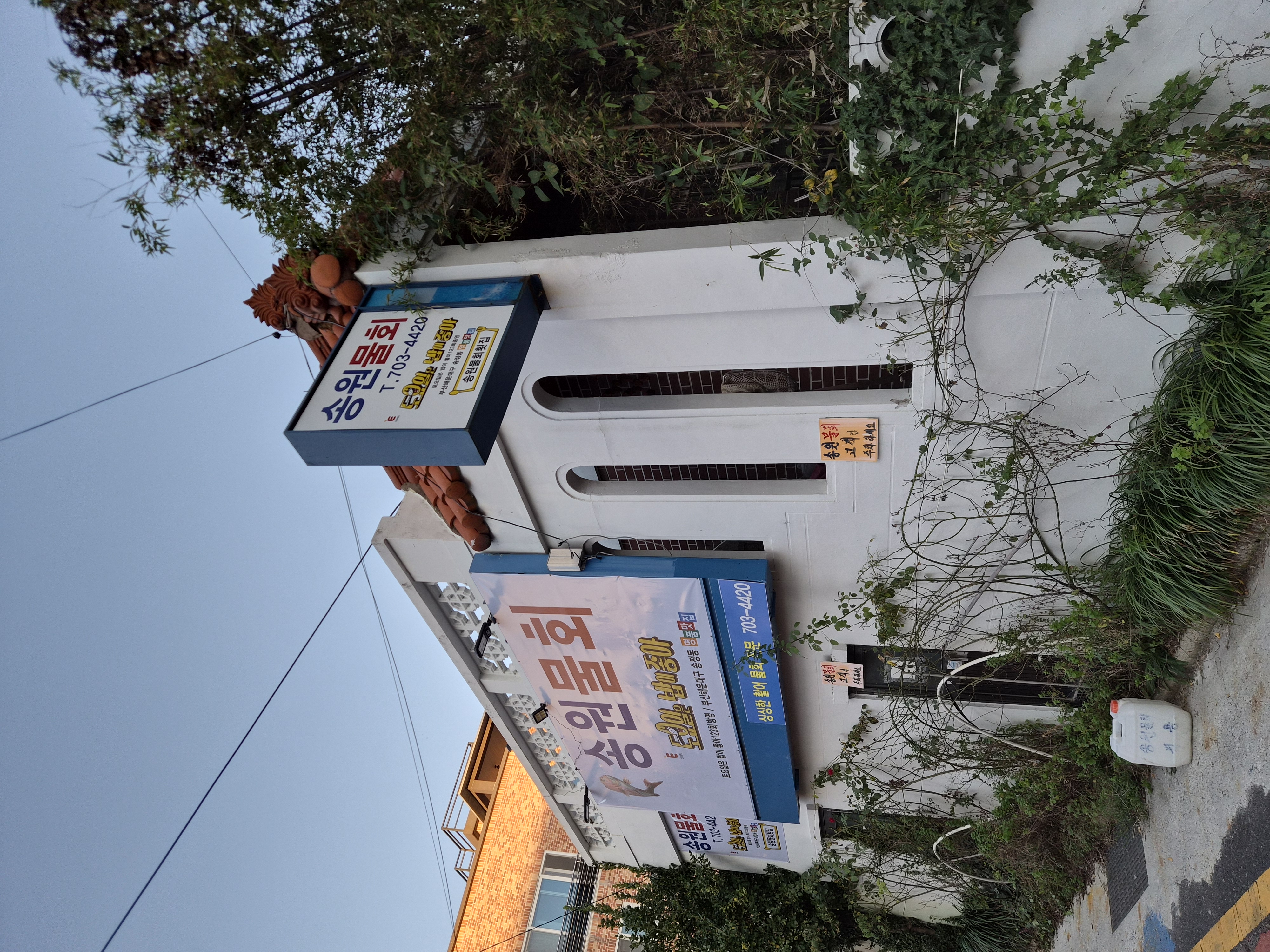 담장에 송원물회 고객 주차하라고 써있으니 그쪽 벽면을 이용하면 되겠다.